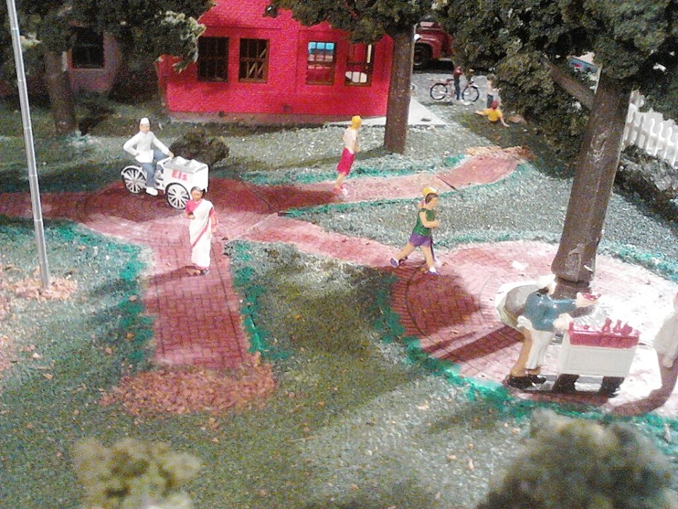 It was a peaceful day in the park. The joggers were passing by. The children were having fun on the play ground. There were delicious Hot dogs and Ice cream to be enjoyed.