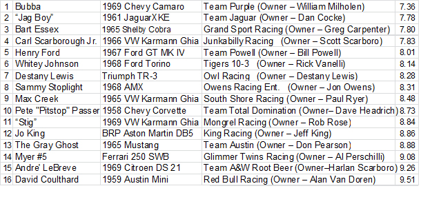 Welcome back! Tommy T-Jet here once again after a spectacular day of qualifying runs yesterday. We have 16 cars, 16 Teams ready for today’s event. The weather was erratic, so times may be a little skewed for the race, but now the snow has melted and the track is clear.